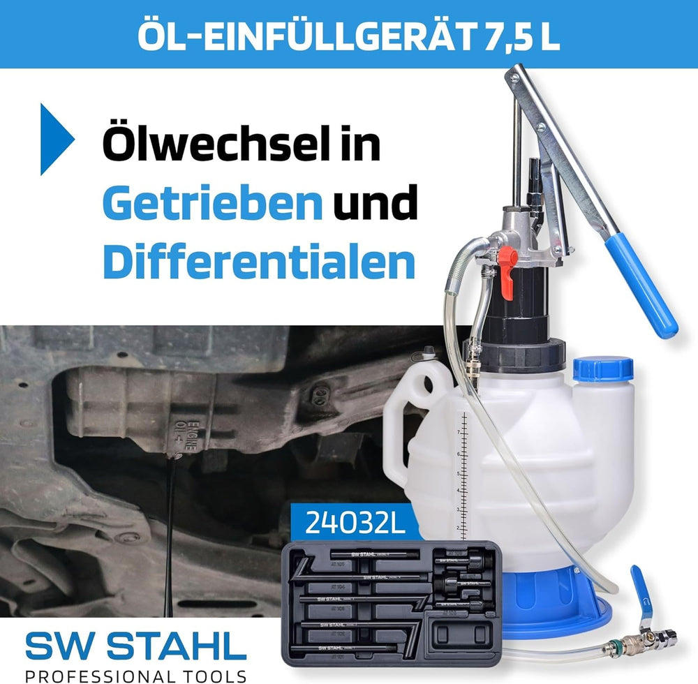 SW-Stahl 24032L Getriebeöl Einfüllgerät Set I 11-teilig I 7,5 Liter I Ölwechsel