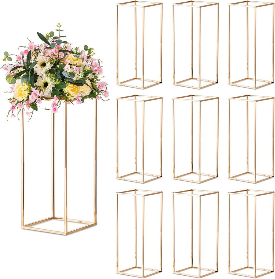 Sziqiqi 10 Stück Hochzeit Mittelstücke Goldvasen Hoch Blumenständer Metall Bodenvase Säule Geometris