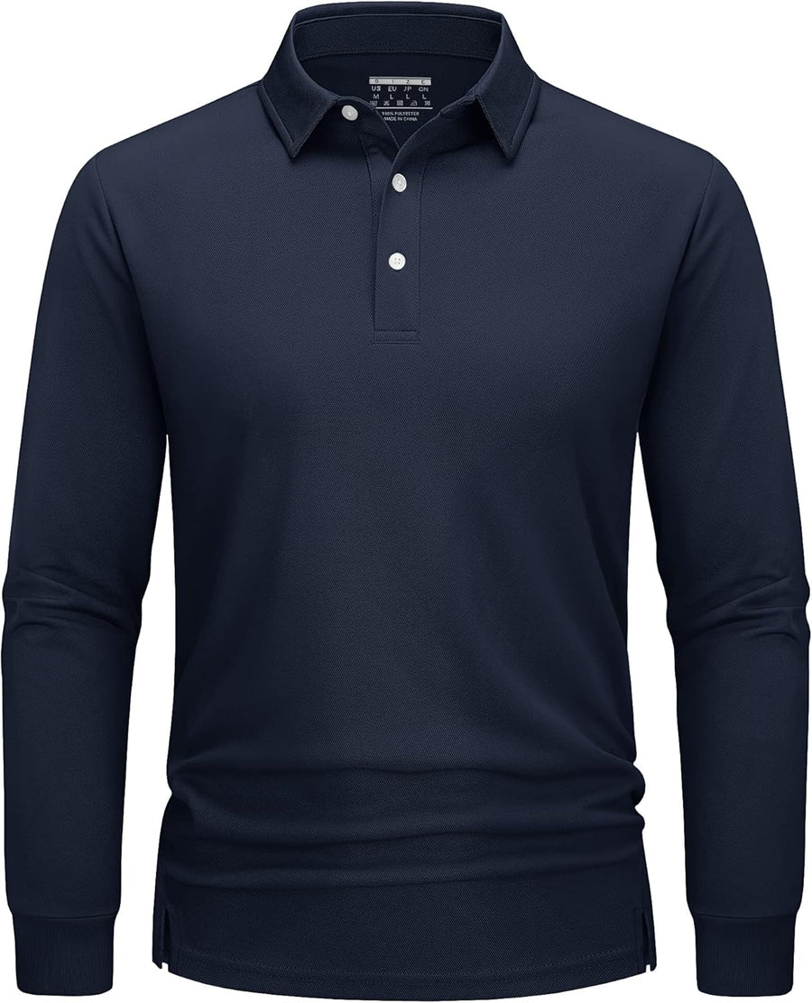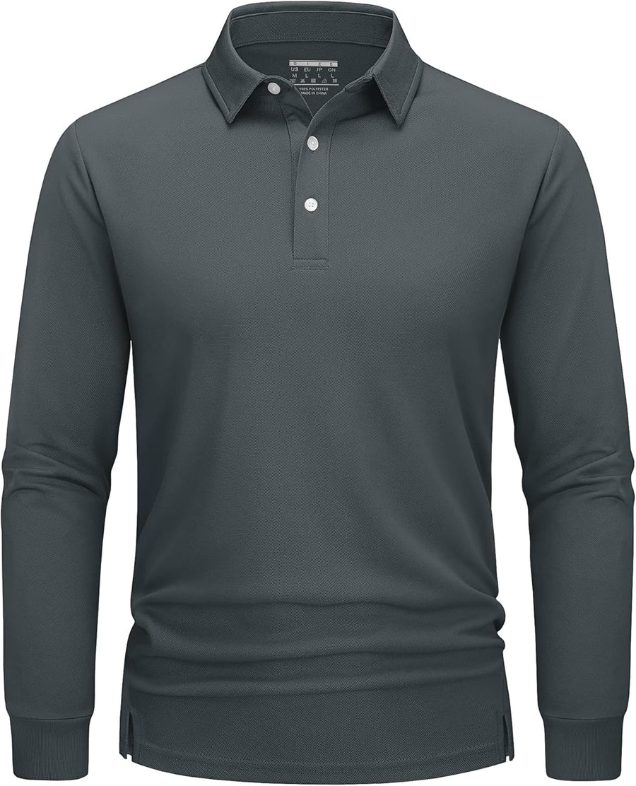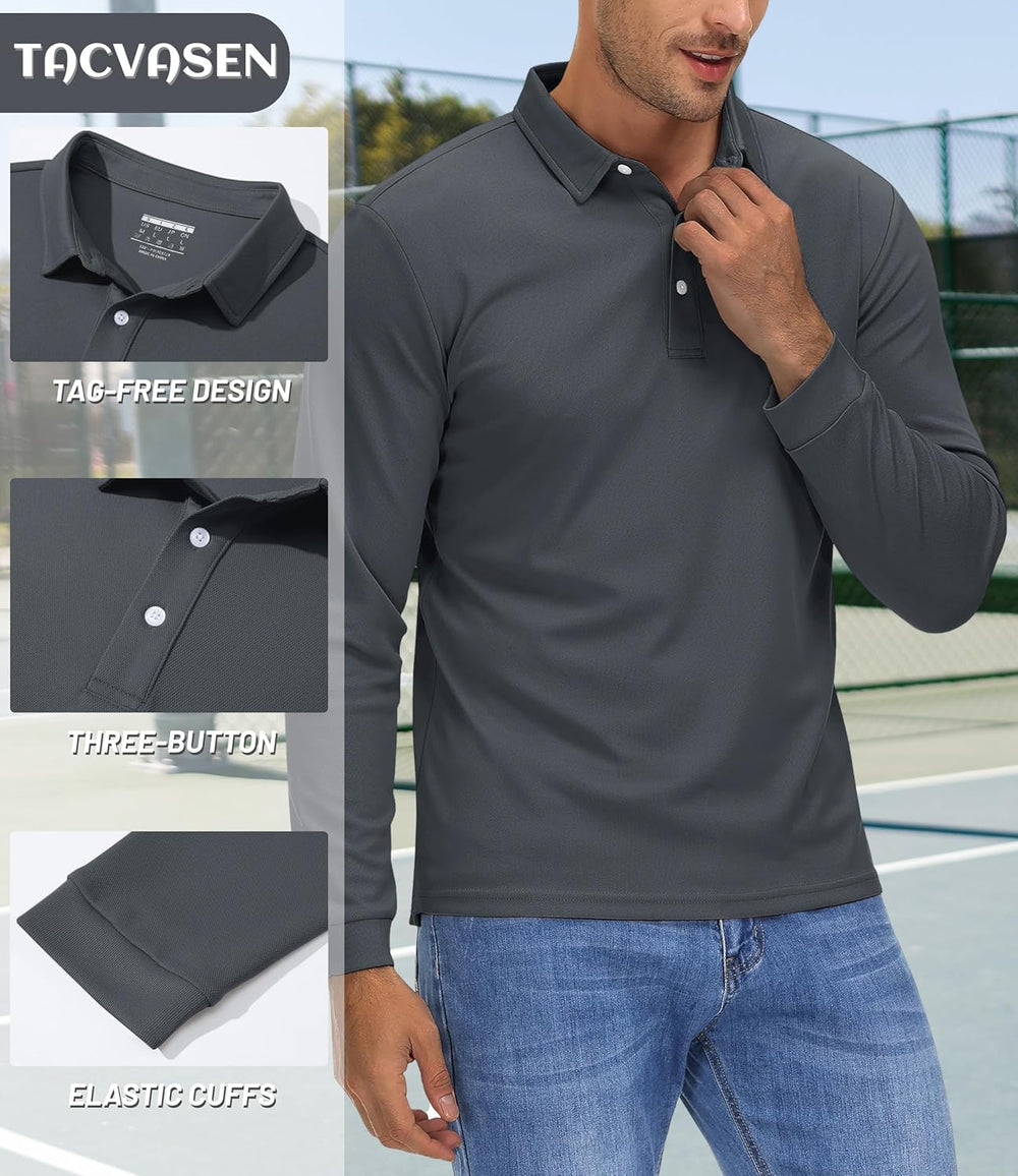 TACVASEN Herren Poloshirt Langarm Golf Polo Schnelltrocknend Funktionsshirts Leicht T-Shirts mit 3-K
