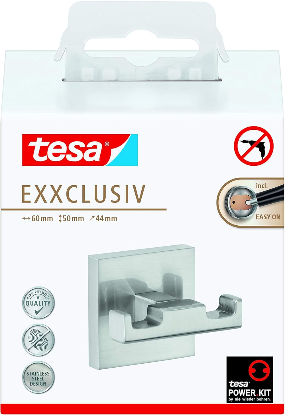 tesa EXXCLUSIV Doppel-Handtuchhaken, verchromt - Bad-Haken mit doppelter Aufhänge-Lösung, zur Wandbe