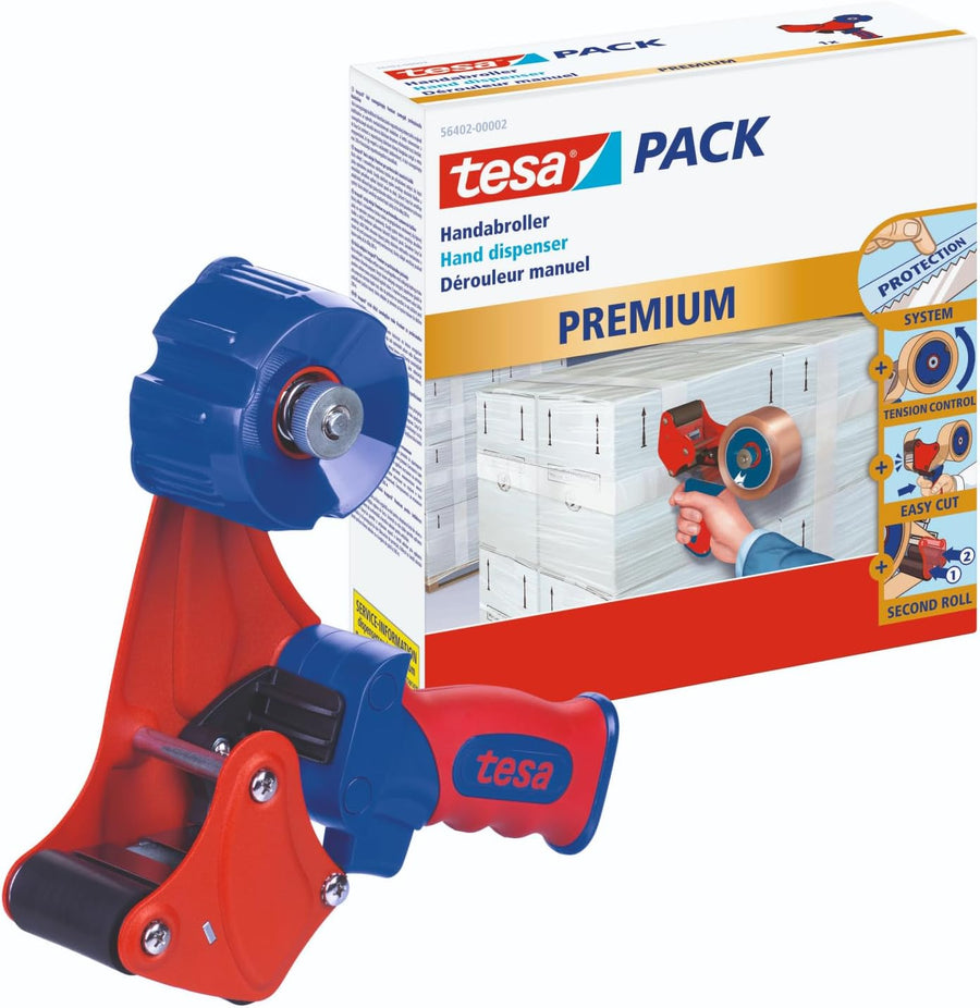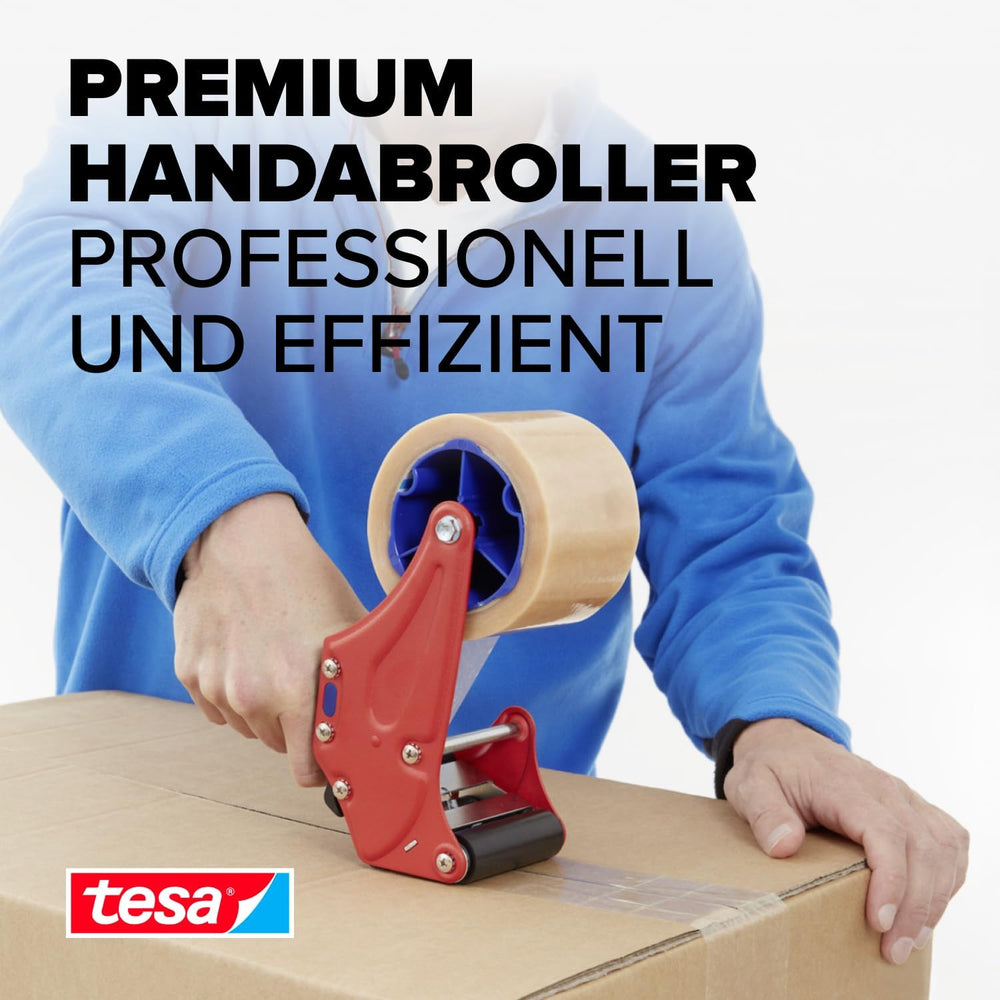 tesa Handabroller PREMIUM - professioneller, robuster Abroller für Klebebänder - für Paketbänder mit