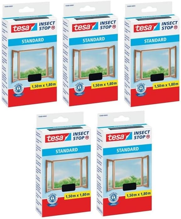 Tesa Fliegengitter für Standard-Fenster, weiss, leicht, 1,5 m x 1,8 m 1,3m:1,5m / 6er Pack anthrazit