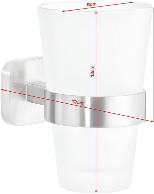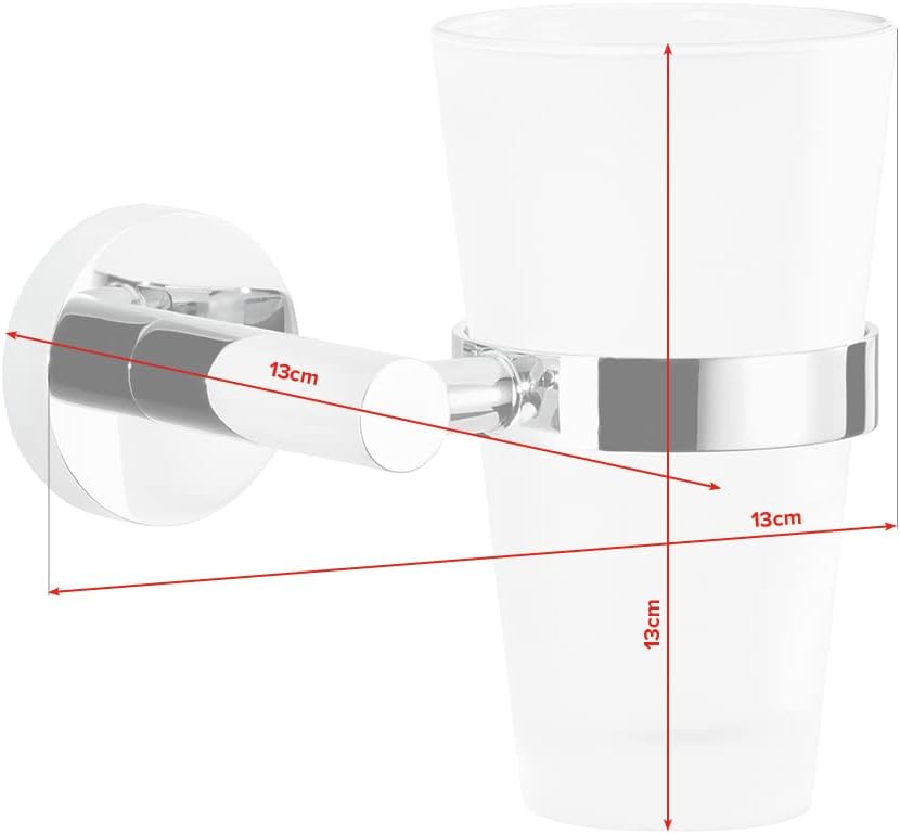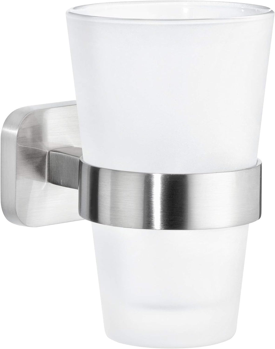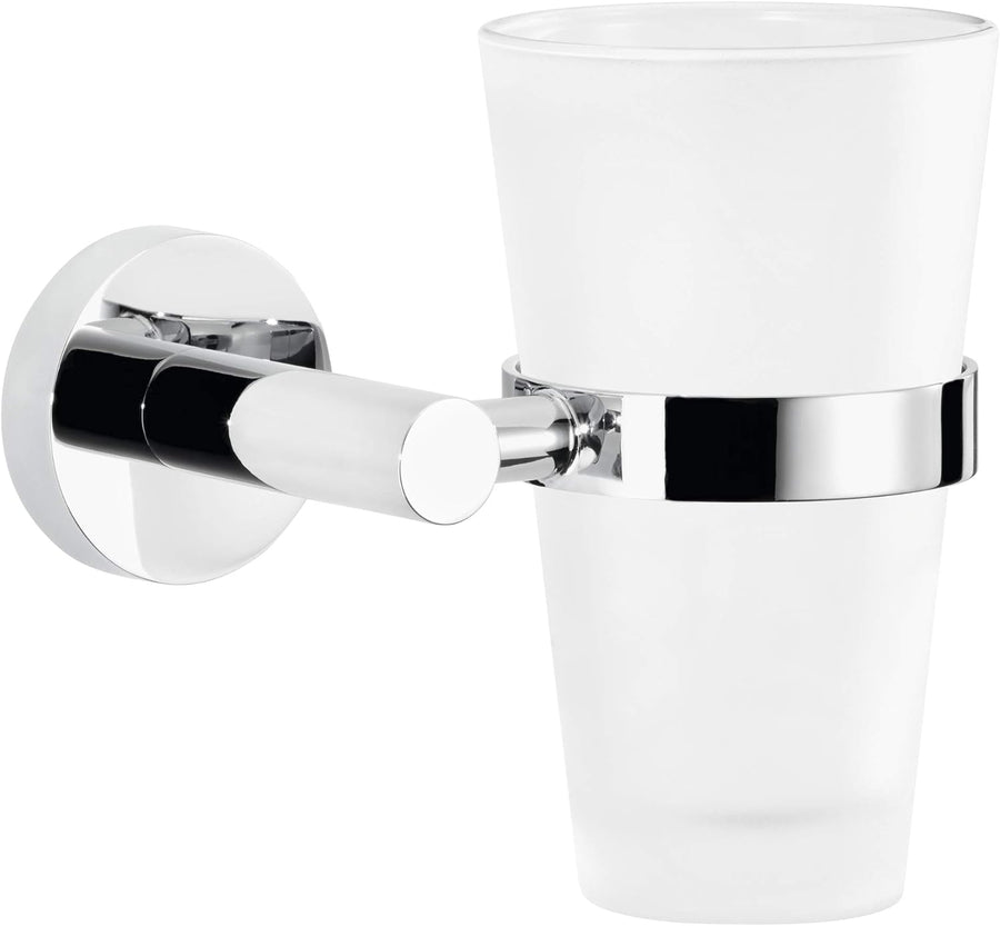 tesa EXXCELLENT Zahnputzbecher mit Halterung - Becher aus Milchglas, verchromte Wandhalterung - zur