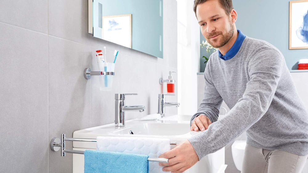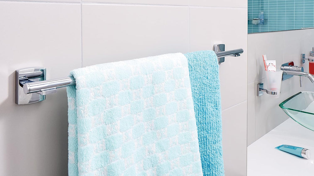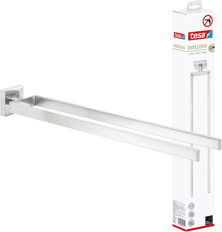 tesa EXXCELLENT Bad Handtuchhalter, 2-armig und schwenkbar, verchromt - rostfrei, zur Wandbefestigun
