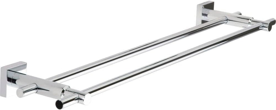 tesa HUKK Doppel-Handtuchstange, verchromt - Badetuchhalter mit 2 Stangen - zur Wandbefestigung ohne