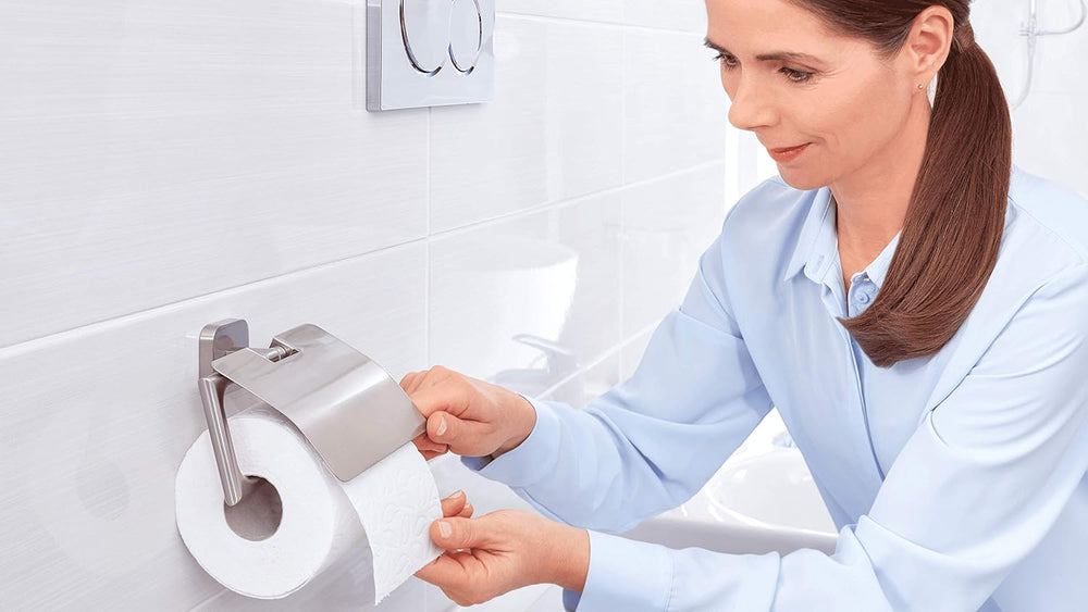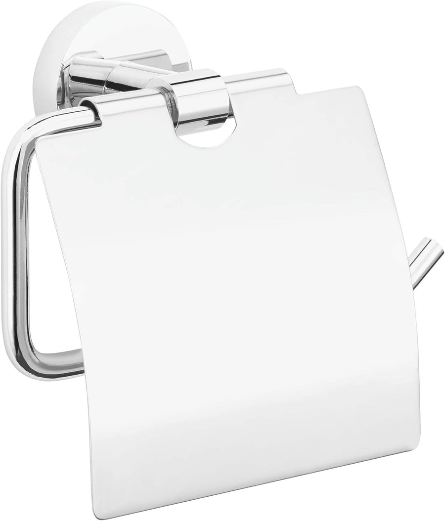 tesa ESTEETIC Toilettenpapierhalter mit Deckel, verchromt - zur Wandbefestigung ohne Bohren, inkl. K