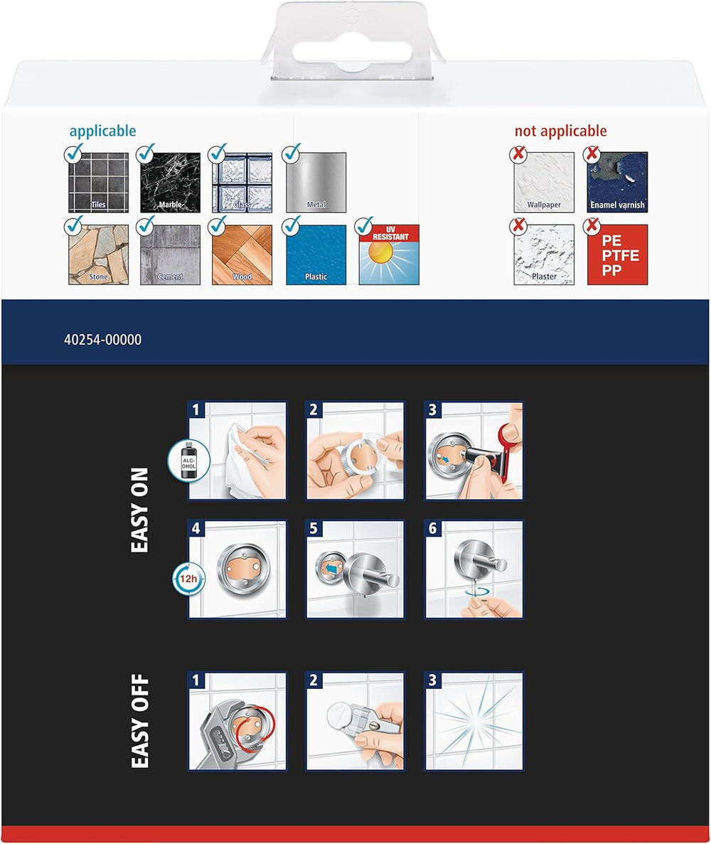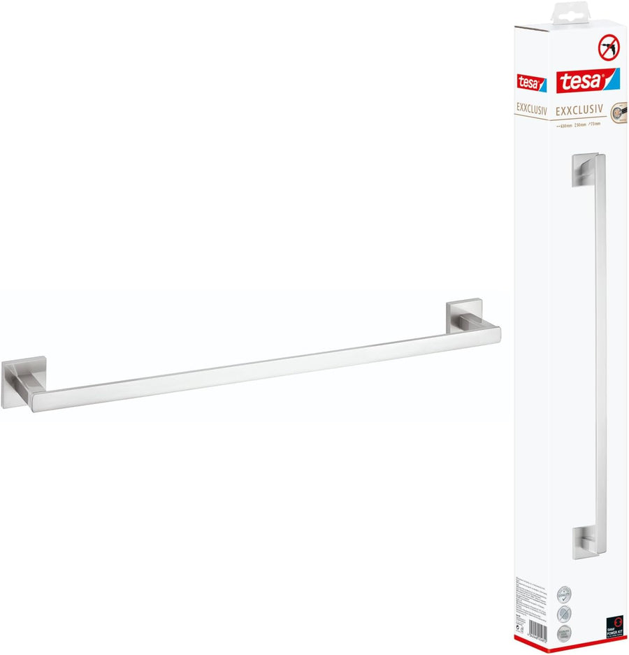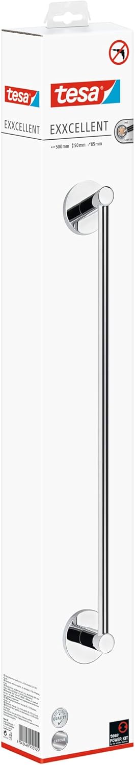 tesa EXXCELLENT Handtuchstange, verchromt - Badetuchhalter zur Wandbefestigung ohne Bohren, inkl. Kl
