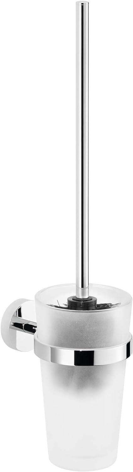 tesa EXXCELLENT Toilettenbürsten-Set, verchromt, mit satiniertem Glas - zur Wandbefestigung ohne Boh