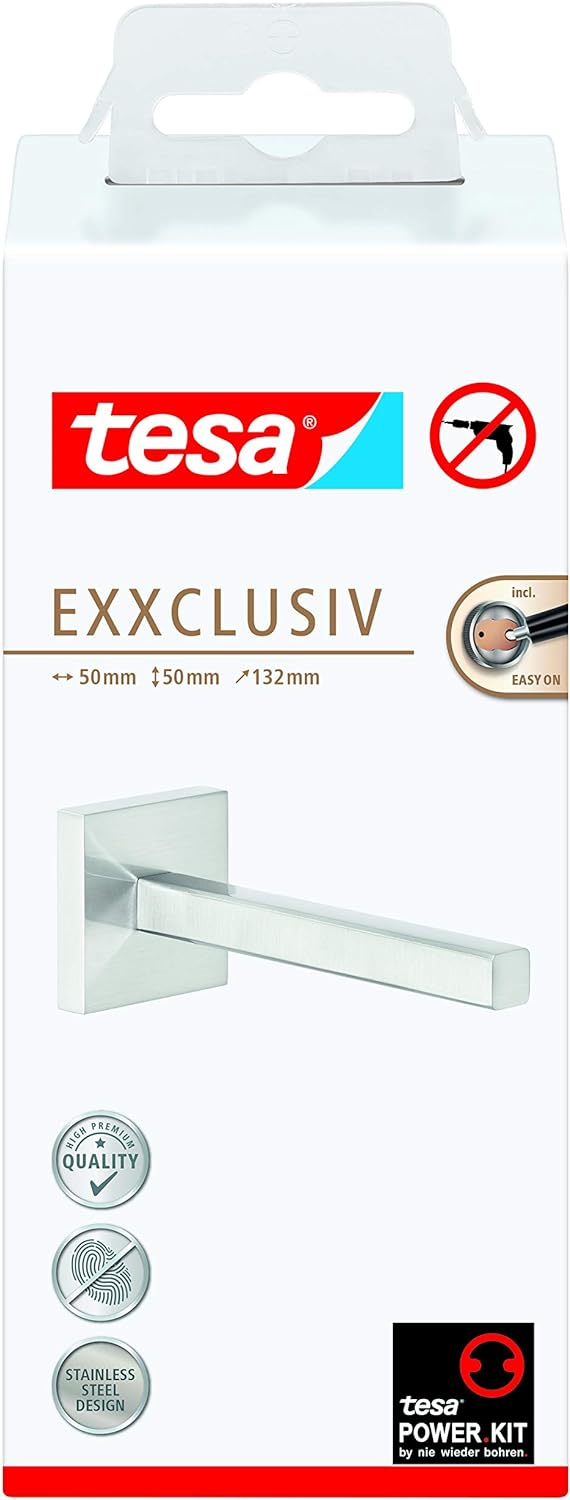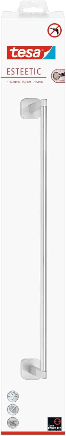 tesa ESTEETIC Gästehandtuchhalter, inkl. Klebelösung, edles Design, Edelstahloptik, garantiert rostf