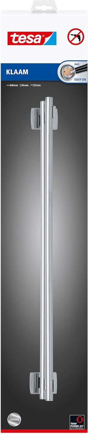 tesa KLAAM Handtuchstange, verchromt - Badetuchhalter - zur Wandbefestigung ohne Bohren, inkl. Klebe