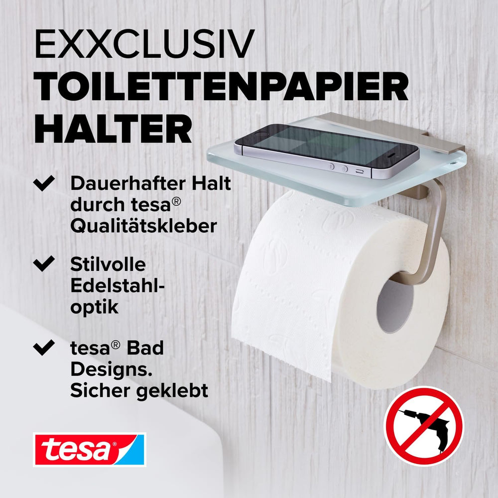 tesa EXXCELLENT Toilettenpapierhalter mit Deckel, verchromt - zur Wandbefestigung ohne Bohren, inkl.