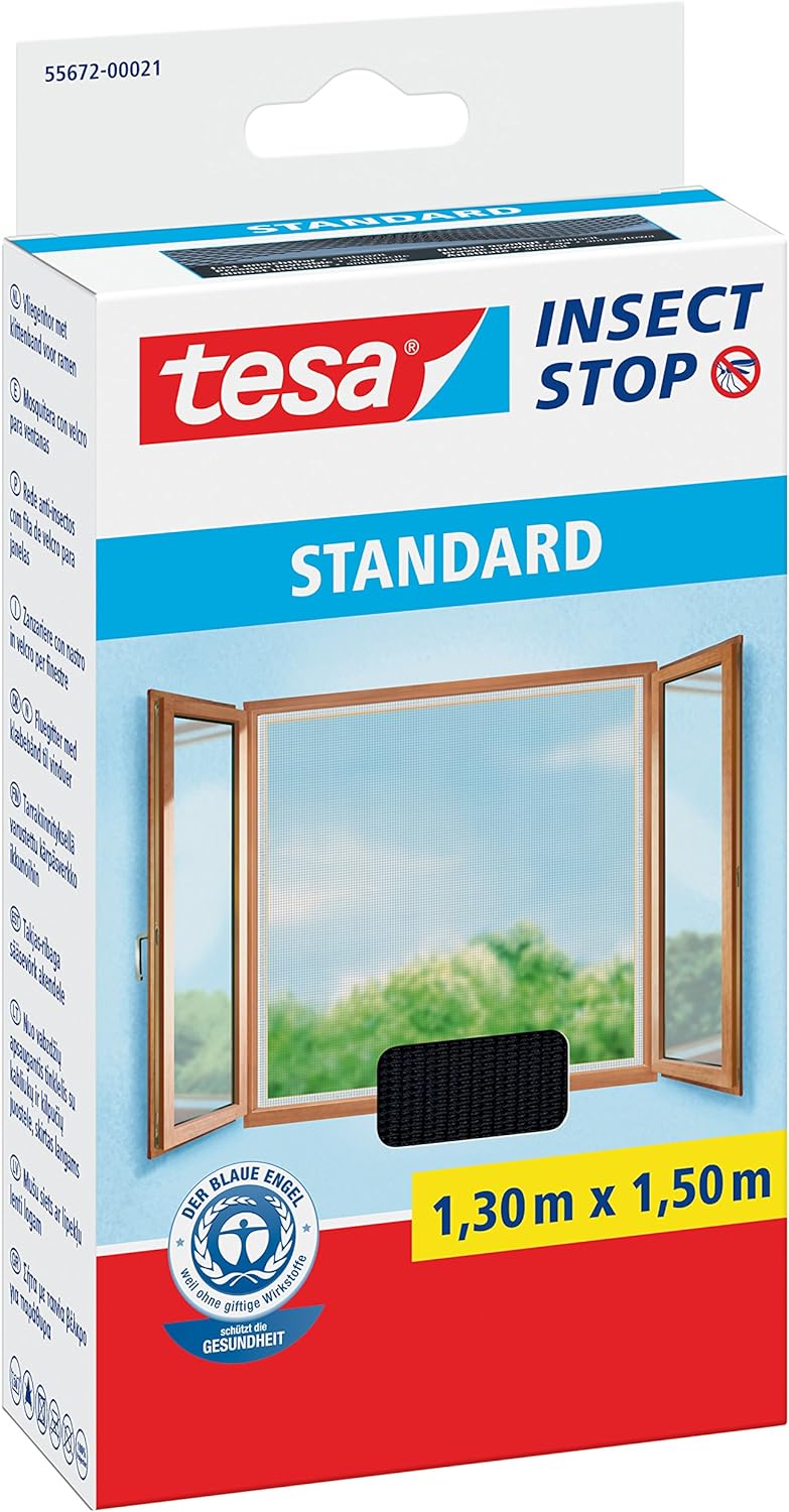 tesa Insect Stop FALT Fenster - Faltbarer Alu-Rahmen & Insect Stop STANDARD Fliegengitter für Fenste