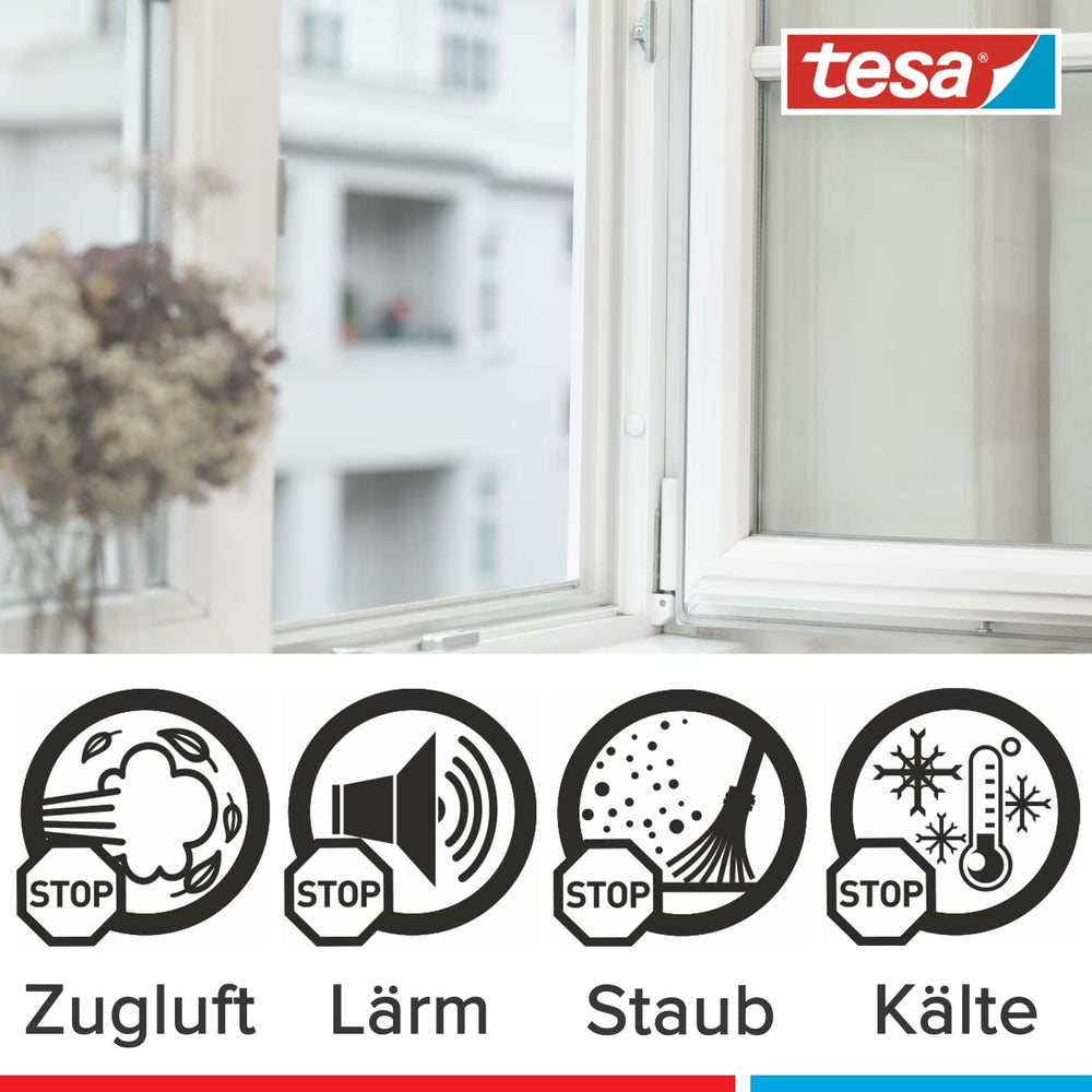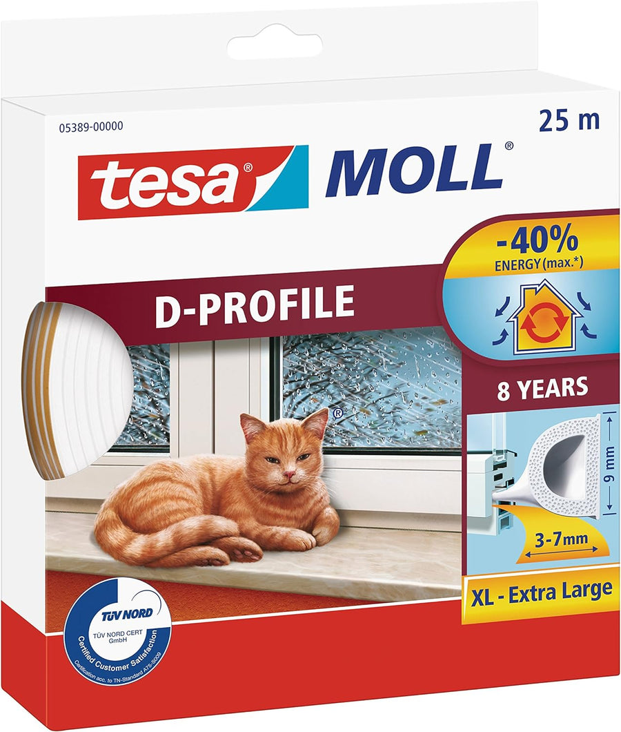 tesa H0538900 05389–00000–00 Moll D Zugluftstopper für Türen und Fenster, weiss, 25 m x 9 mm, 25m x
