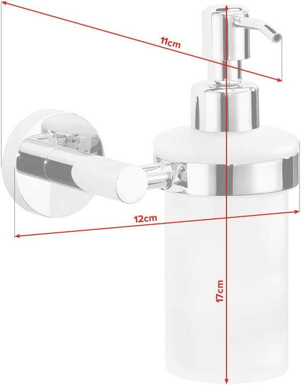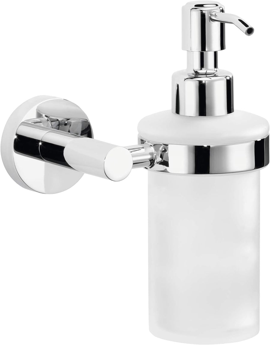 tesa HUKK Seifenspender-Set, satiniertes Glas und verchromter Edelstahl - Flüssigseifenspender zur W