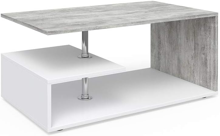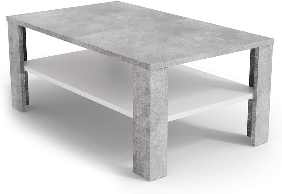 Vicco Couchtisch Homer, Beton/Weiss, 60 x 42 cm Beton 60x42x60 cm, Beton 60x42x60 cm
