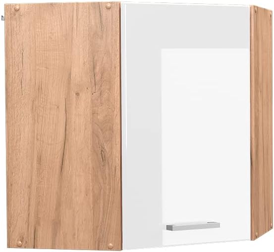 Vicco Eckhängeschrank R-Line, Weiss Hochglanz/Goldkraft Eiche, 57 cm Weiss Hochglanz Eckhängeschrank