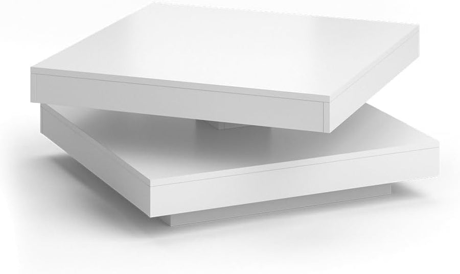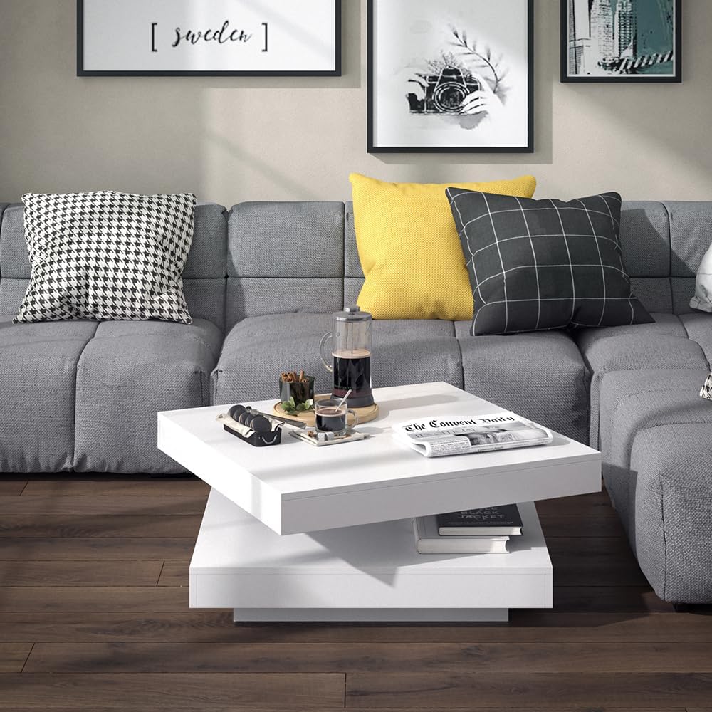 Vicco Couchtisch Elias 360° drehbar 70 x 70 x 34 cm Wohnzimmertisch Tisch (Weiss)