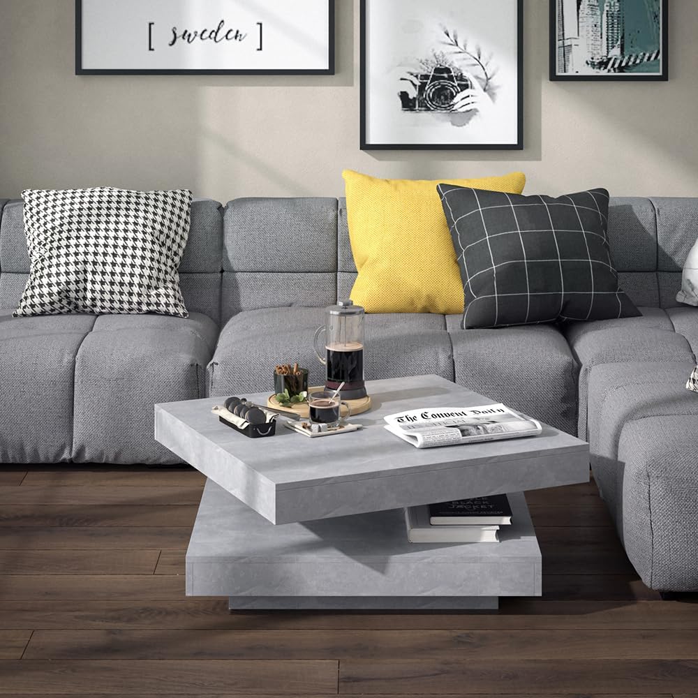 Vicco Couchtisch Elias 360° drehbar 70 x 70 x 34 cm Wohnzimmertisch Tisch (Anthrazit/Goldkraft)