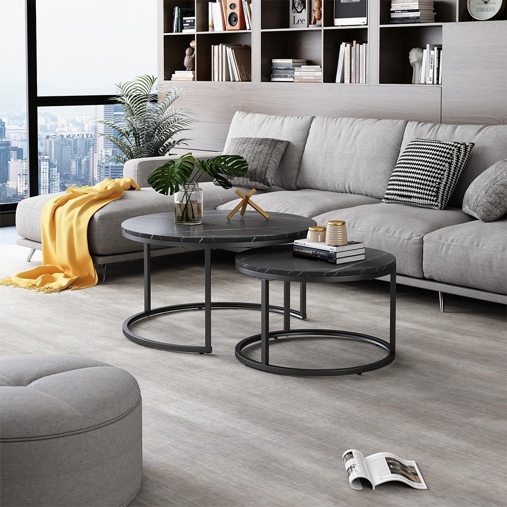 Vicco Couchtisch-Set Montreal, Schwarz/Schwarzer Marmor, 77 x 40 cm 2 Teile 2er Set Schwarz, 2er Set