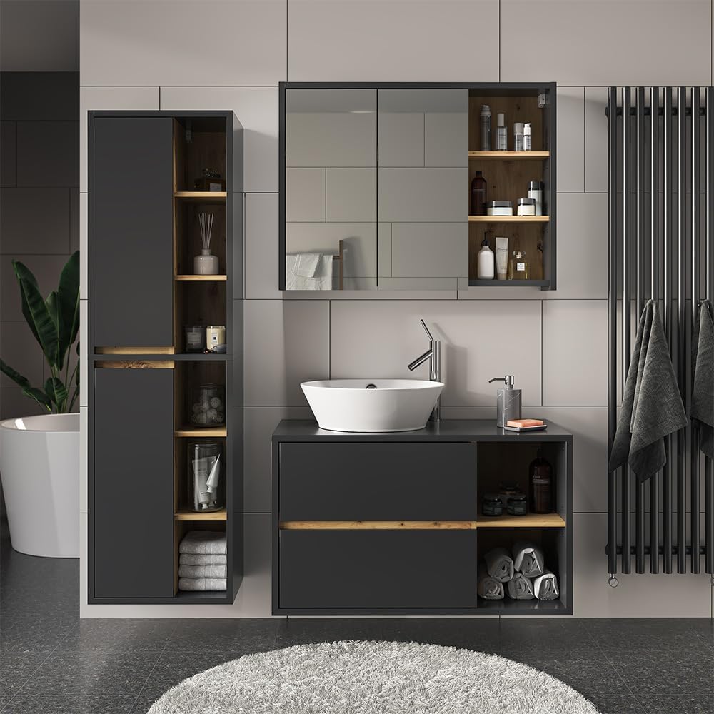 Vicco Badspiegelschrank Viola, Anthrazit/Eiche, 100 x 75 cm, Artisan-eiche