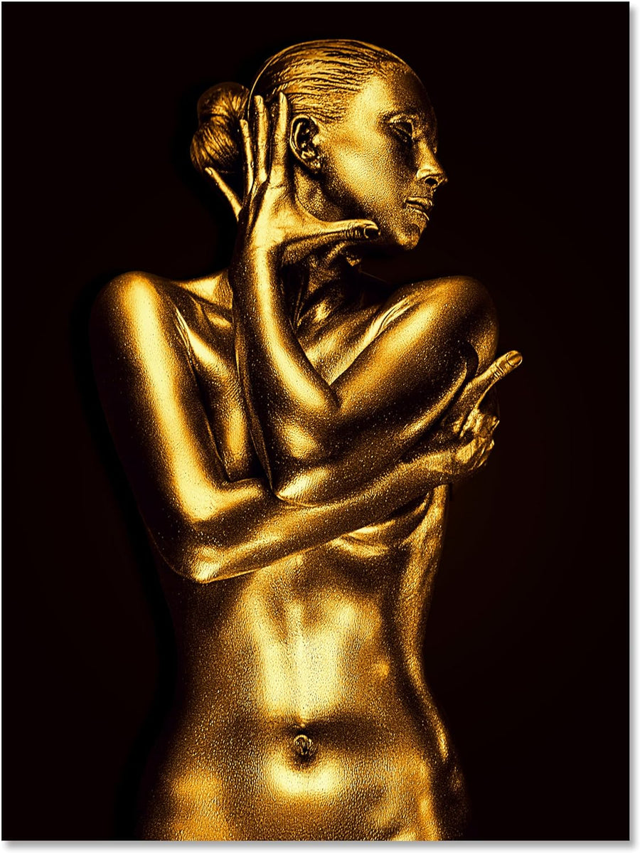 wandmotiv24 Leinwand-Bild Gold Collection, Grösse 60x45cm, Hochformat, Frau in Gold-metallic, Top-Mo