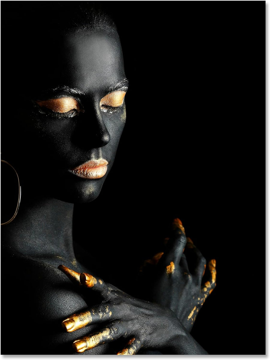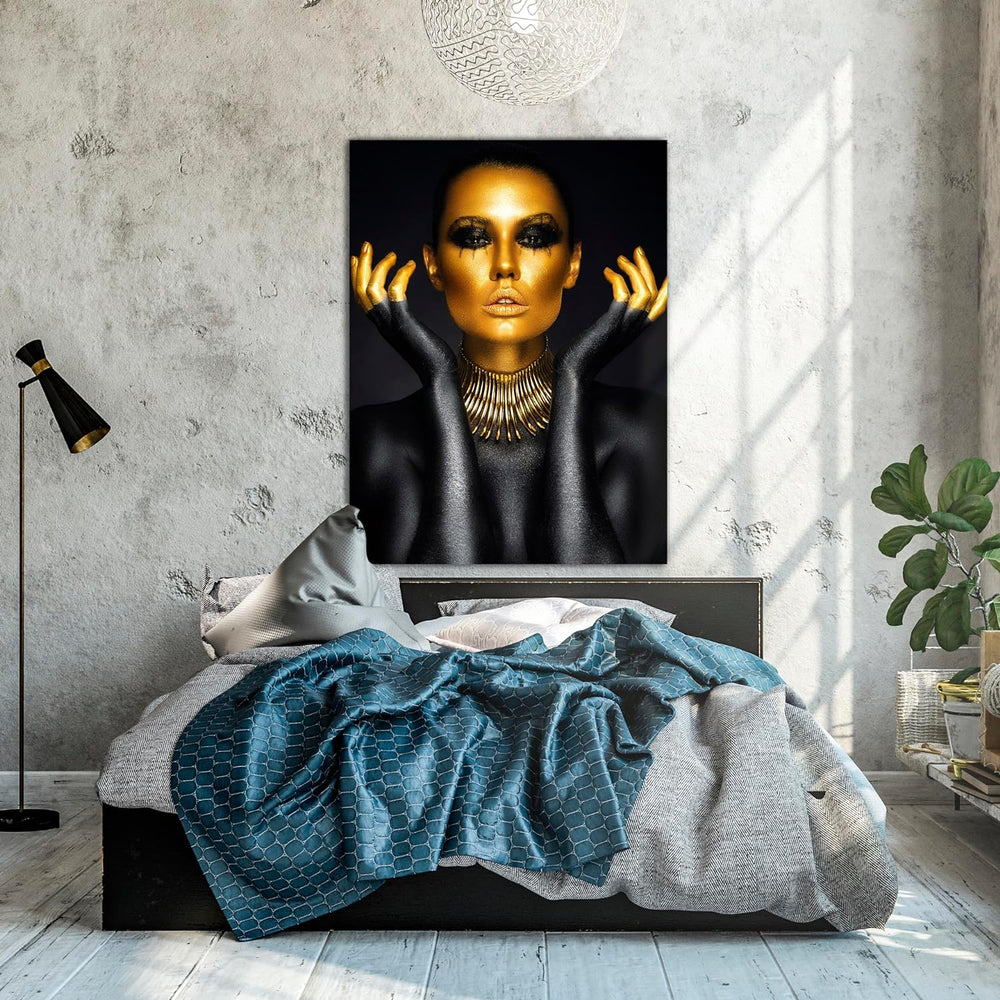 wandmotiv24 Leinwand-Bild Gold Collection, Grösse 60x45cm, Hochformat, Frau in Gold & Schwarz, Top-M