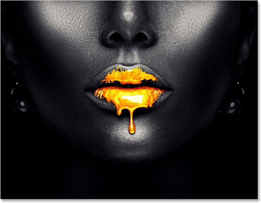 wandmotiv24 Leinwand-Bild Gold Collection, Grösse 60x45cm, Querformat, Frau in Gold, tropfende Farbe
