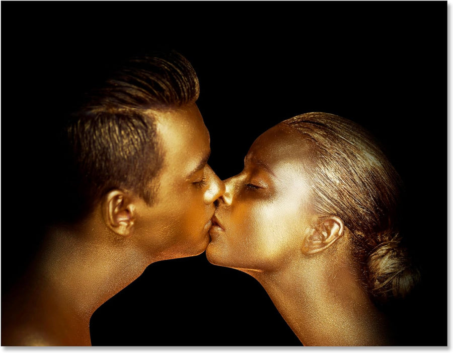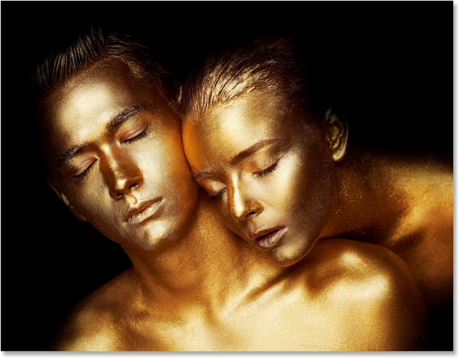 wandmotiv24 Leinwand-Bild Gold Collection, Grösse 60x45cm, Querformat, Frau & Mann in Gold-metallic,