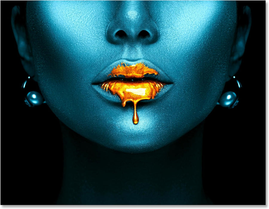 wandmotiv24 Leinwand-Bild Gold Collection, Grösse 60x45cm, Querformat, Frau in Blau mit Gold auf den