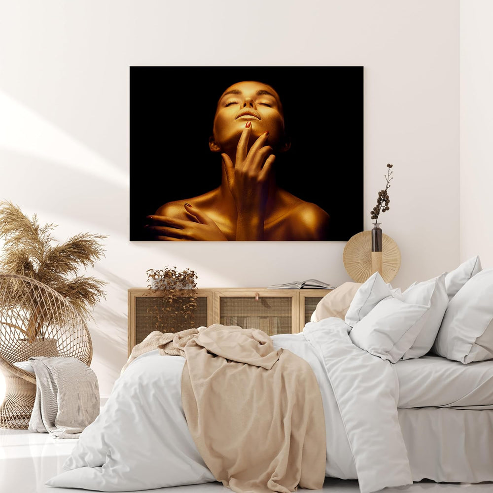 wandmotiv24 Leinwand-Bild Gold Collection, Grösse 60x45cm, Querformat, Frau mit Goldener Farbe auf d