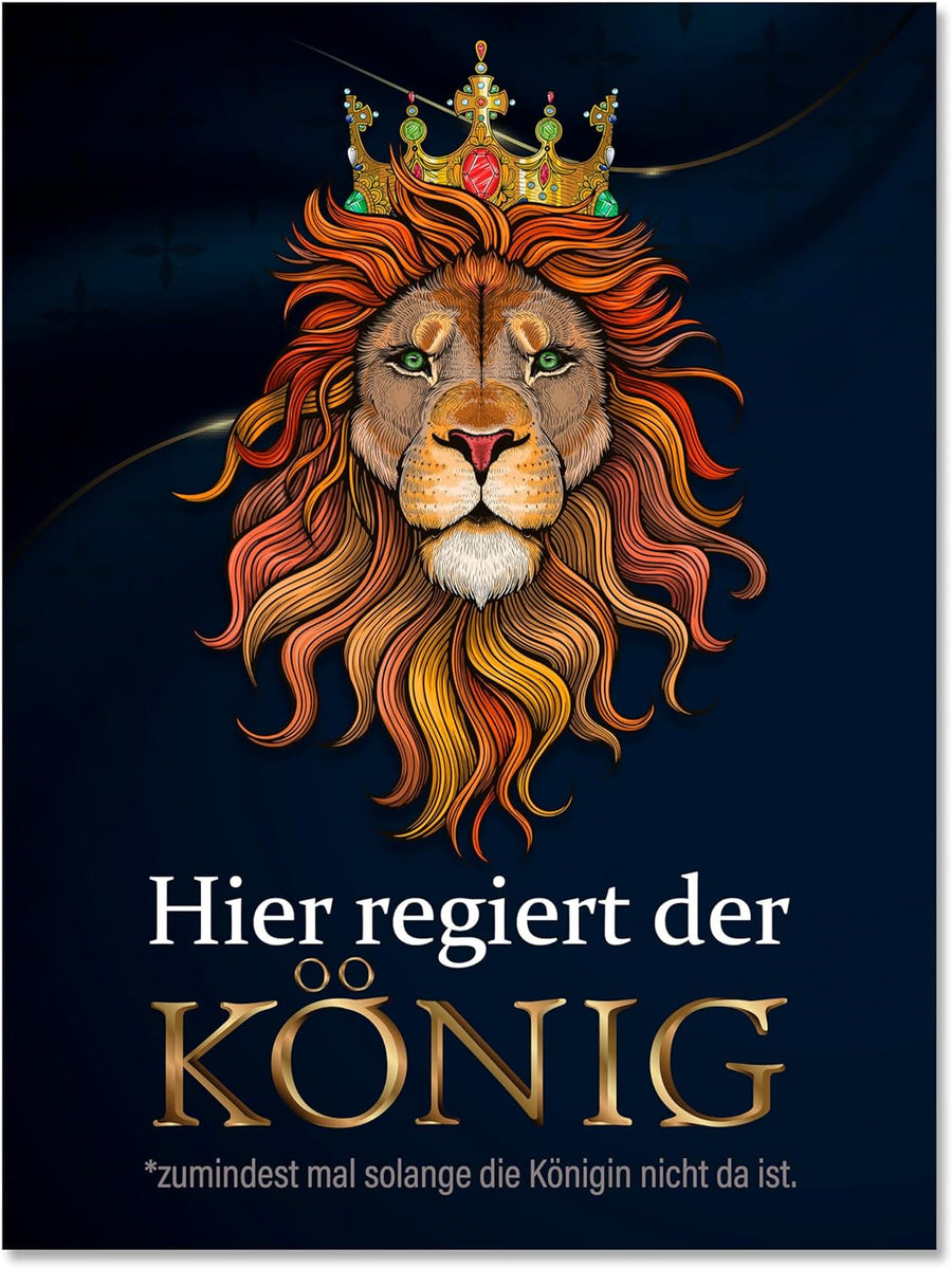wandmotiv24 Leinwand-Bild Löwe, Grösse 60x45cm, Hochformat, König der Löwen, Gold, Krone, Königin, R