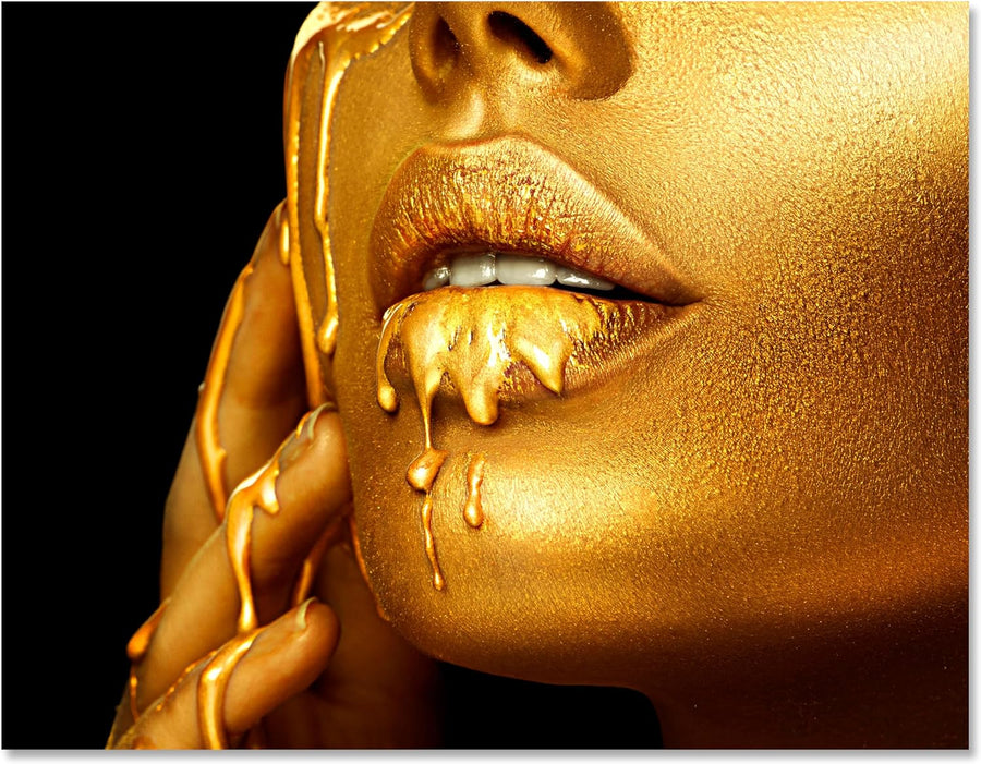 wandmotiv24 Leinwand-Bild Gold Collection, Grösse 40x30cm, Querformat, Frau in Gold, tropfende Farbe