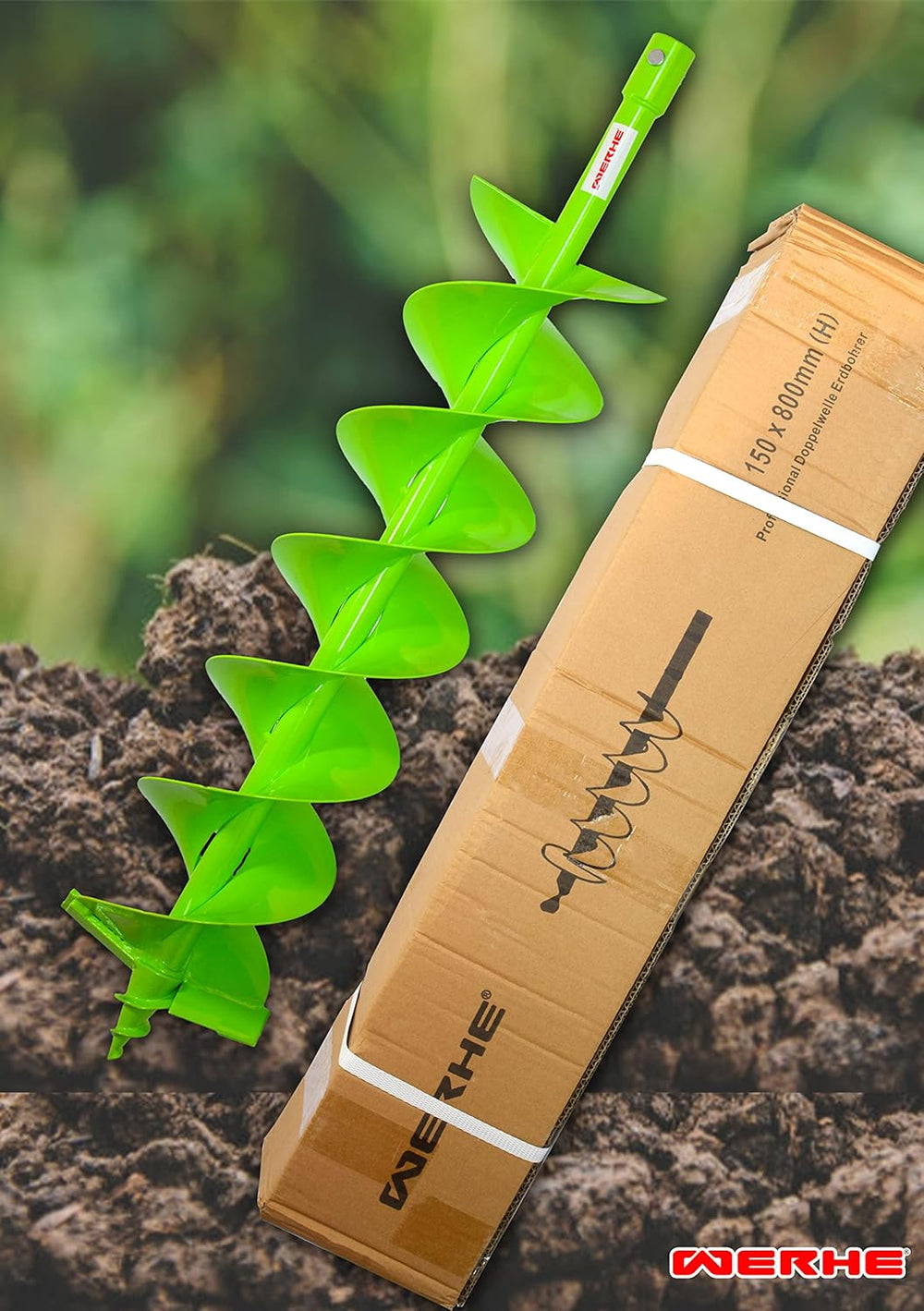 WERHE® Profi Bohrer VollStahl, Erdbohrer für bohrmaschine 150 mm Doppel-Welle extrem robust mit Maki