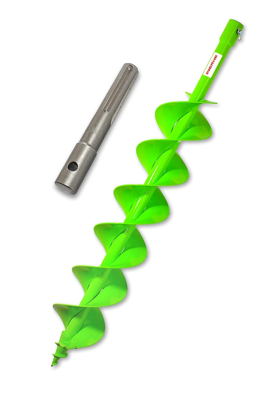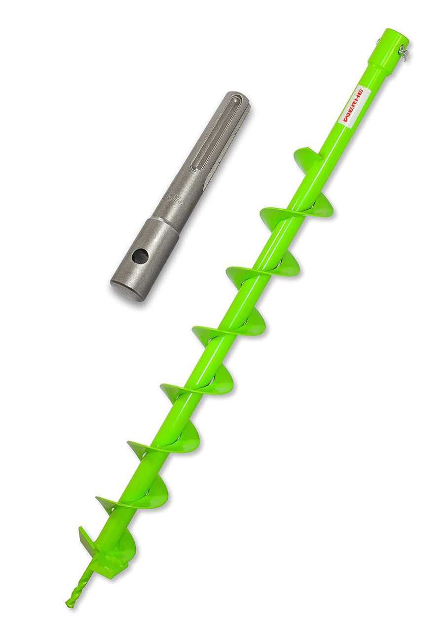 WERHE® Profi Bohrer VollStahl, Erdbohrer für bohrmaschine 150 mm extrem robust mit SDS Plus Adapter