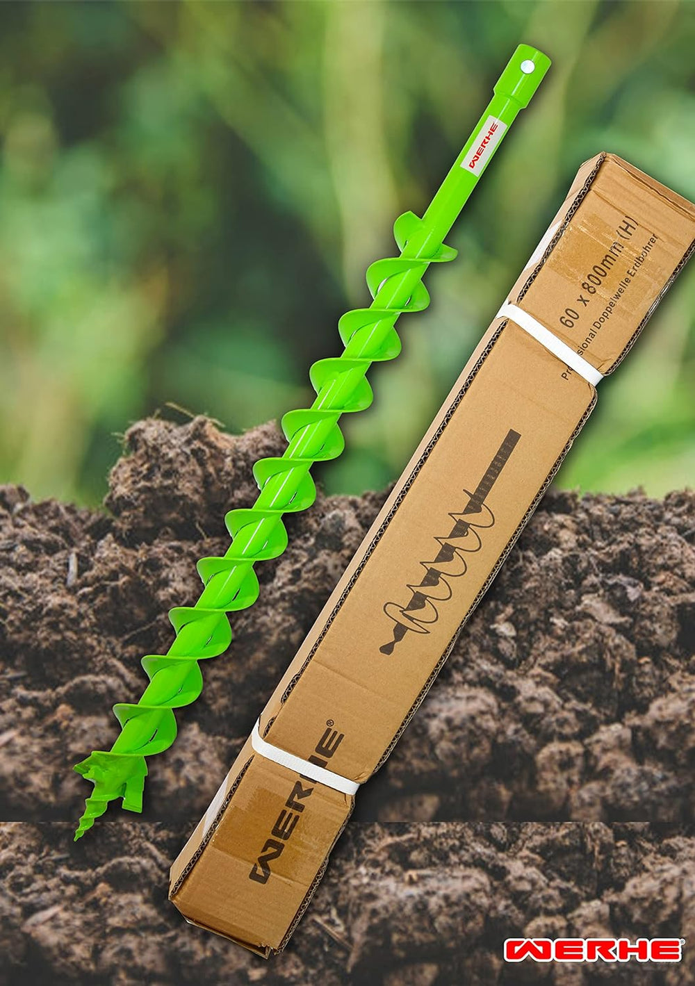 WERHE® Profi Bohrer VollStahl, Erdbohrer für bohrmaschine 60 mm Doppel-Welle extrem robust mit Hex A