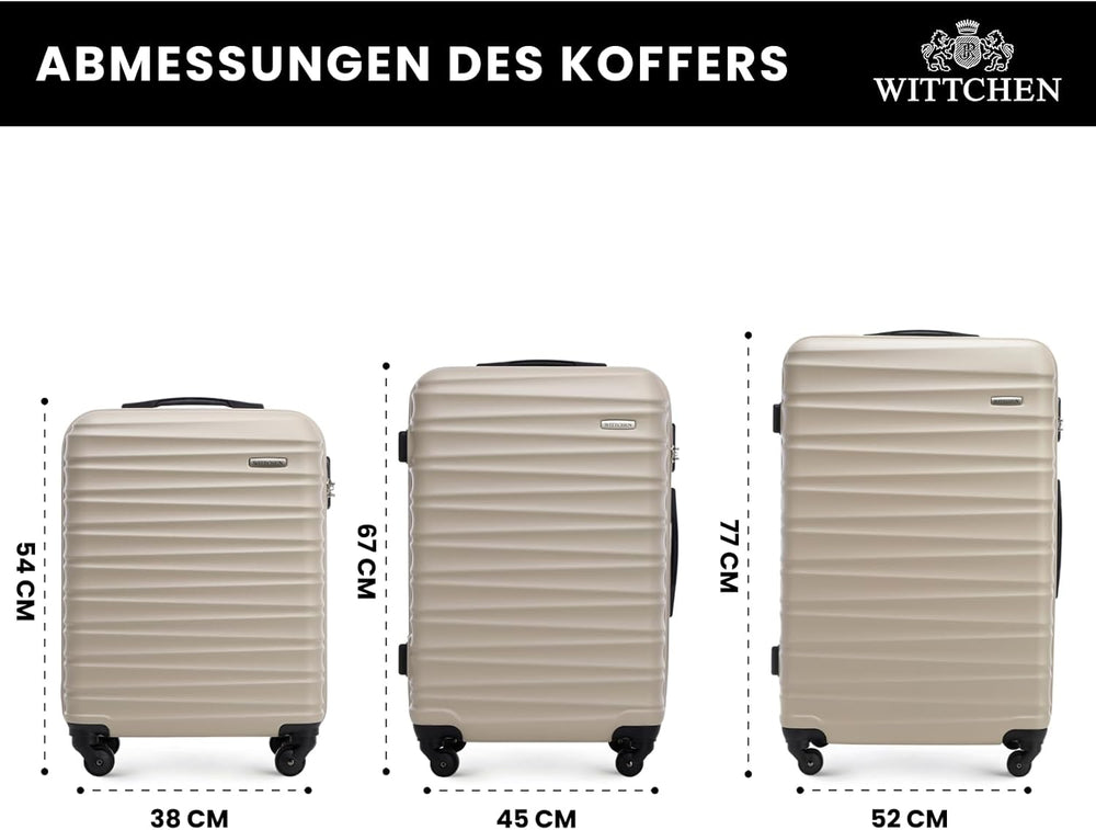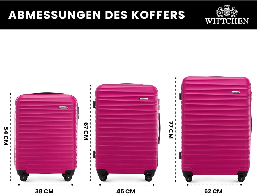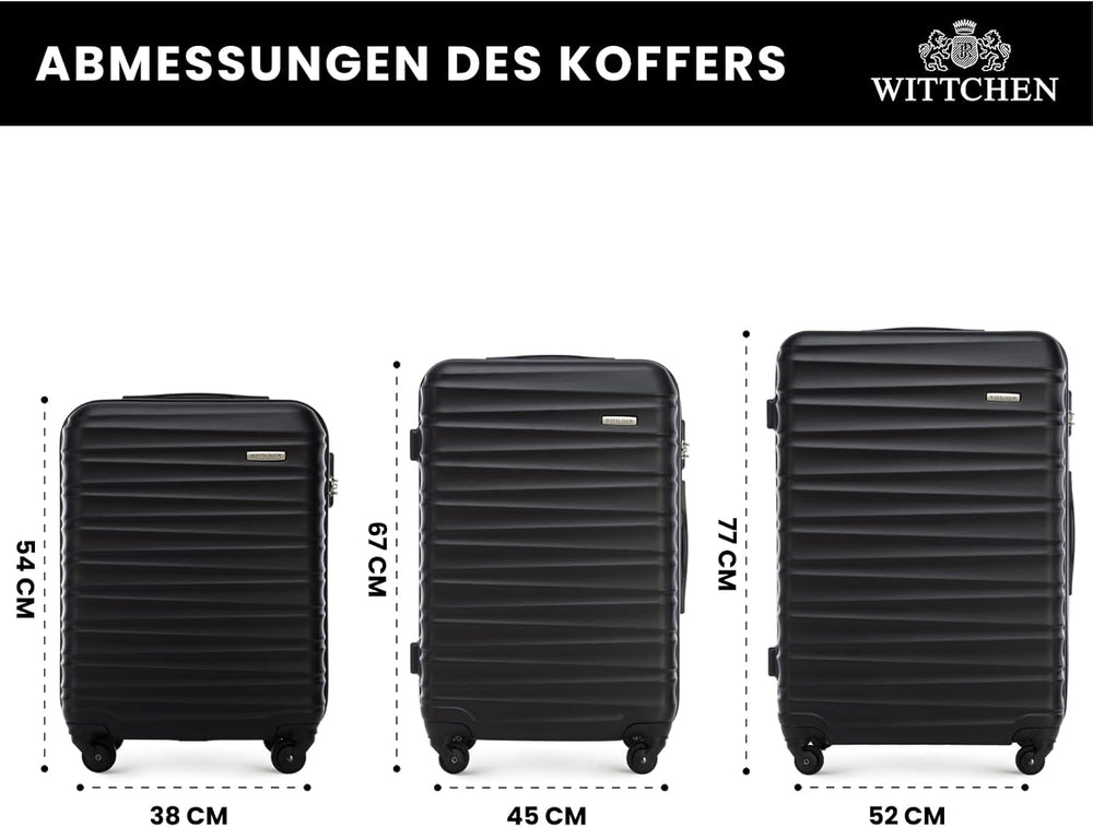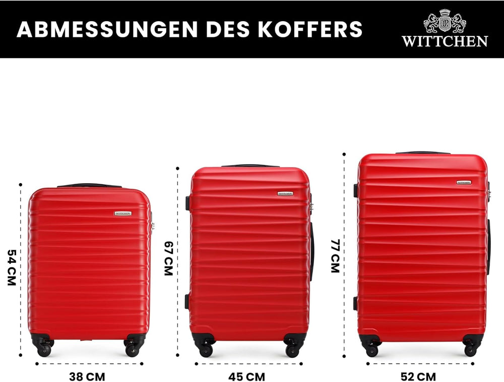 WITTCHEN Reisekoffer 3er Koffer-Set Rollkoffer Trolley Handgepäck Hartschale aus ABS mit 4 Spinner-R