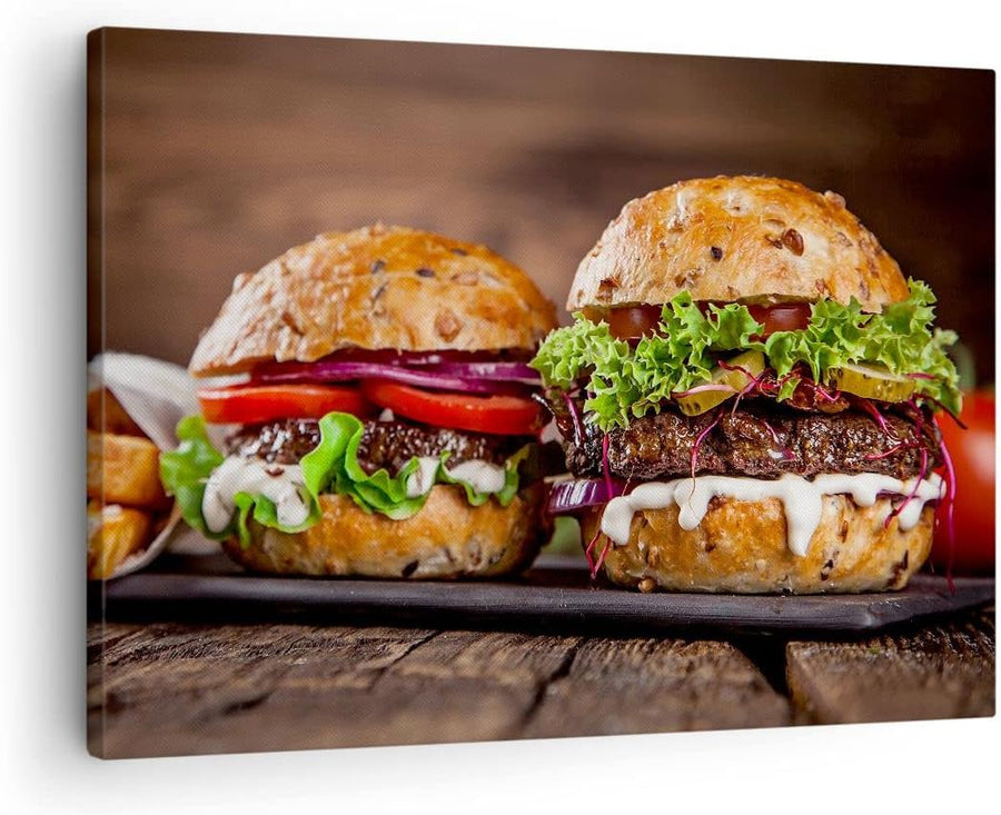 Bilder auf Leinwand Amerikaner Hamburger Essen Barbecue Leinwandbild 70x50cm Wandbilder Dekoration W