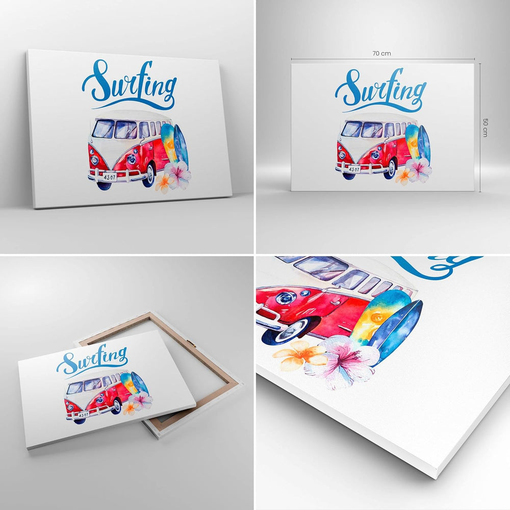 Bilder auf Leinwand Aquarell Surfbrett Palme Bäume Leinwandbild 70x50cm Wandbilder Dekoration Wohnzi