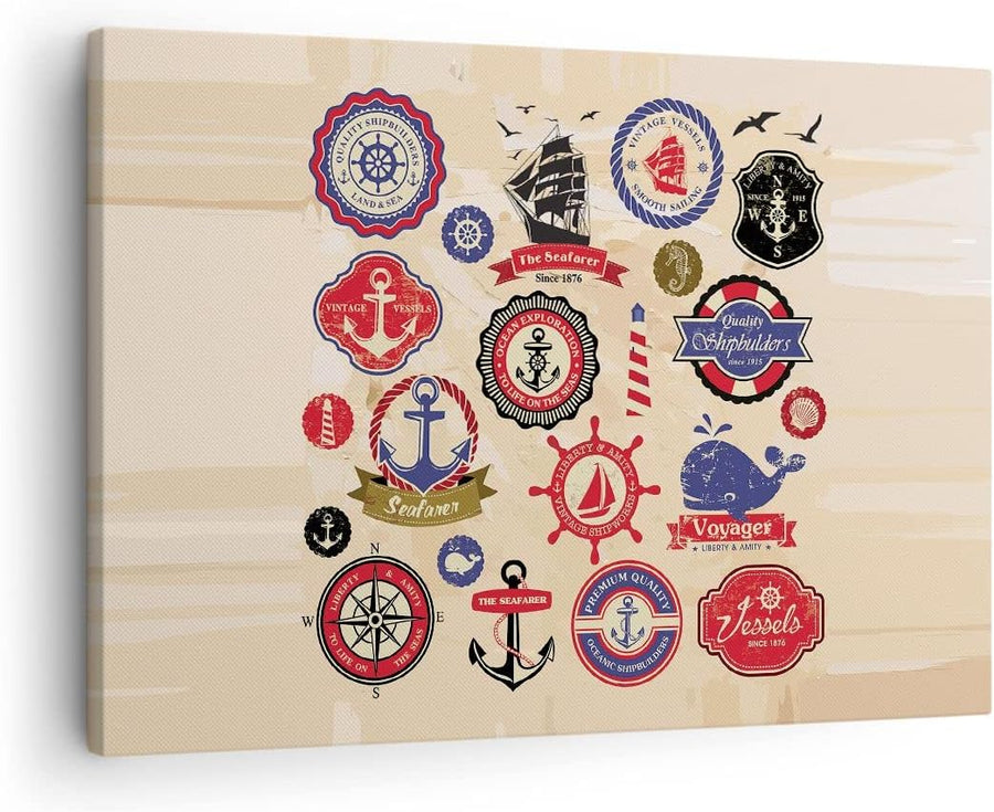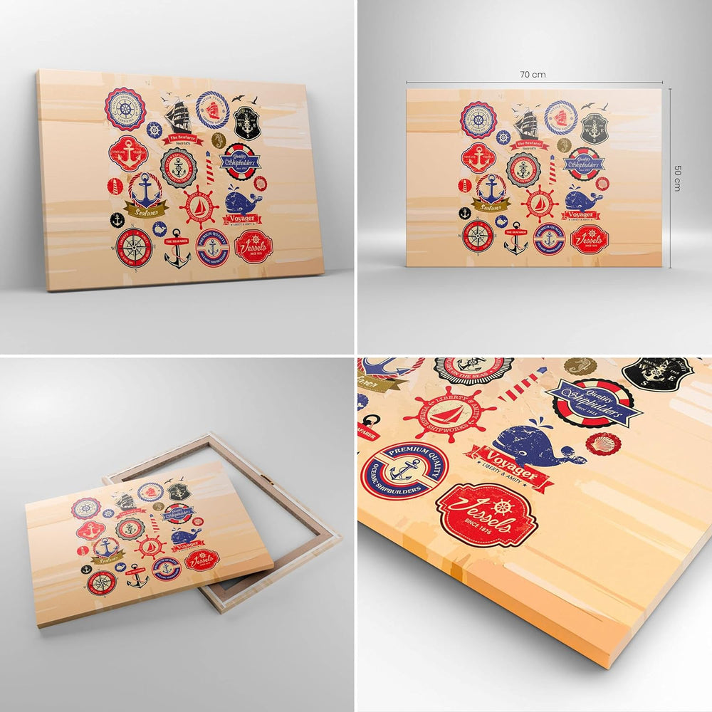Bilder auf Leinwand Anker Fahne Abzeichen Boot Leinwandbild 70x50cm Wandbilder Dekoration Wohnzimmer