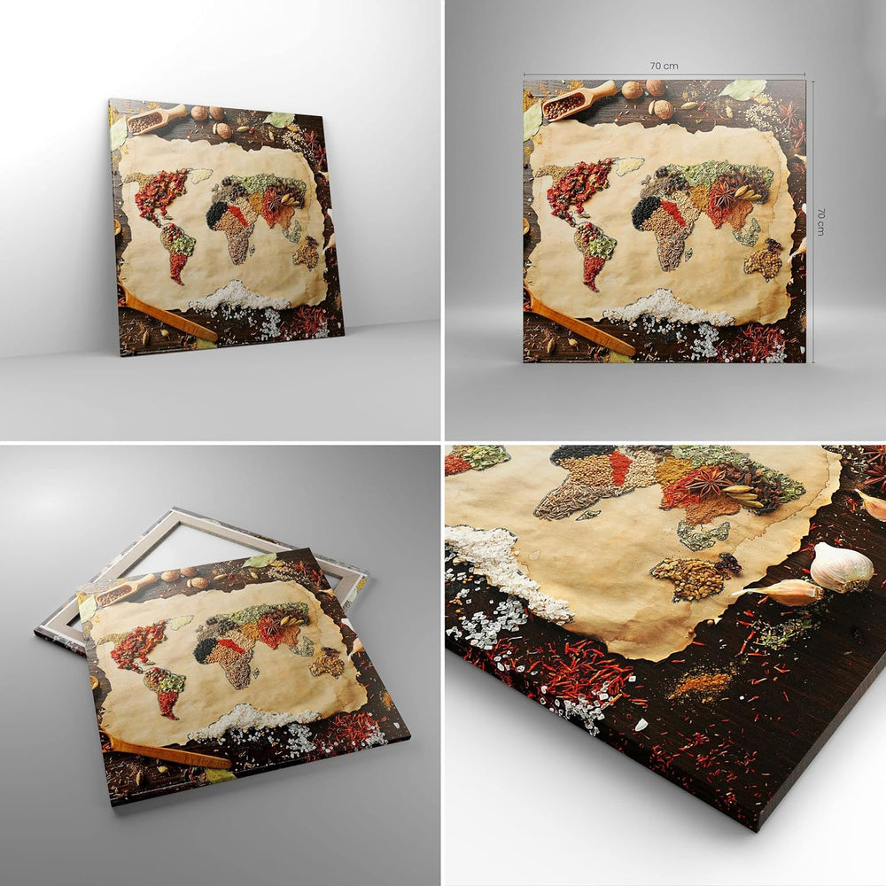 Bilder auf Leinwand 70x70cm Leinwandbild Welt Karte Gewürze Farben Gross Wanddeko Bild Schlafzimmer