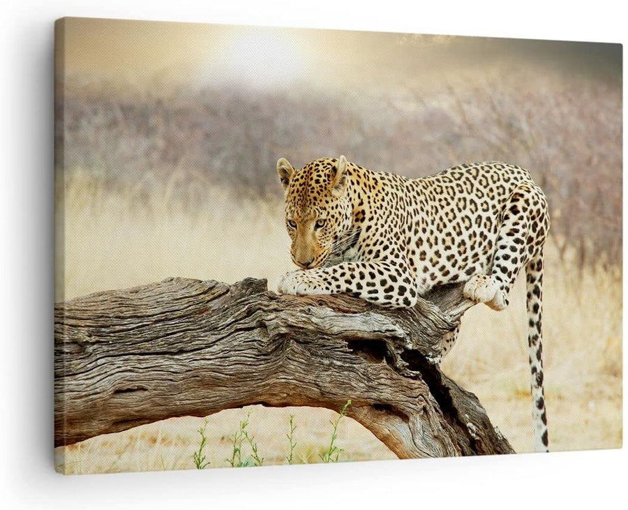 Bilder auf Leinwand Afrika Leopard Katze Safari Leinwandbild 70x50cm Wandbilder Dekoration Wohnzimme