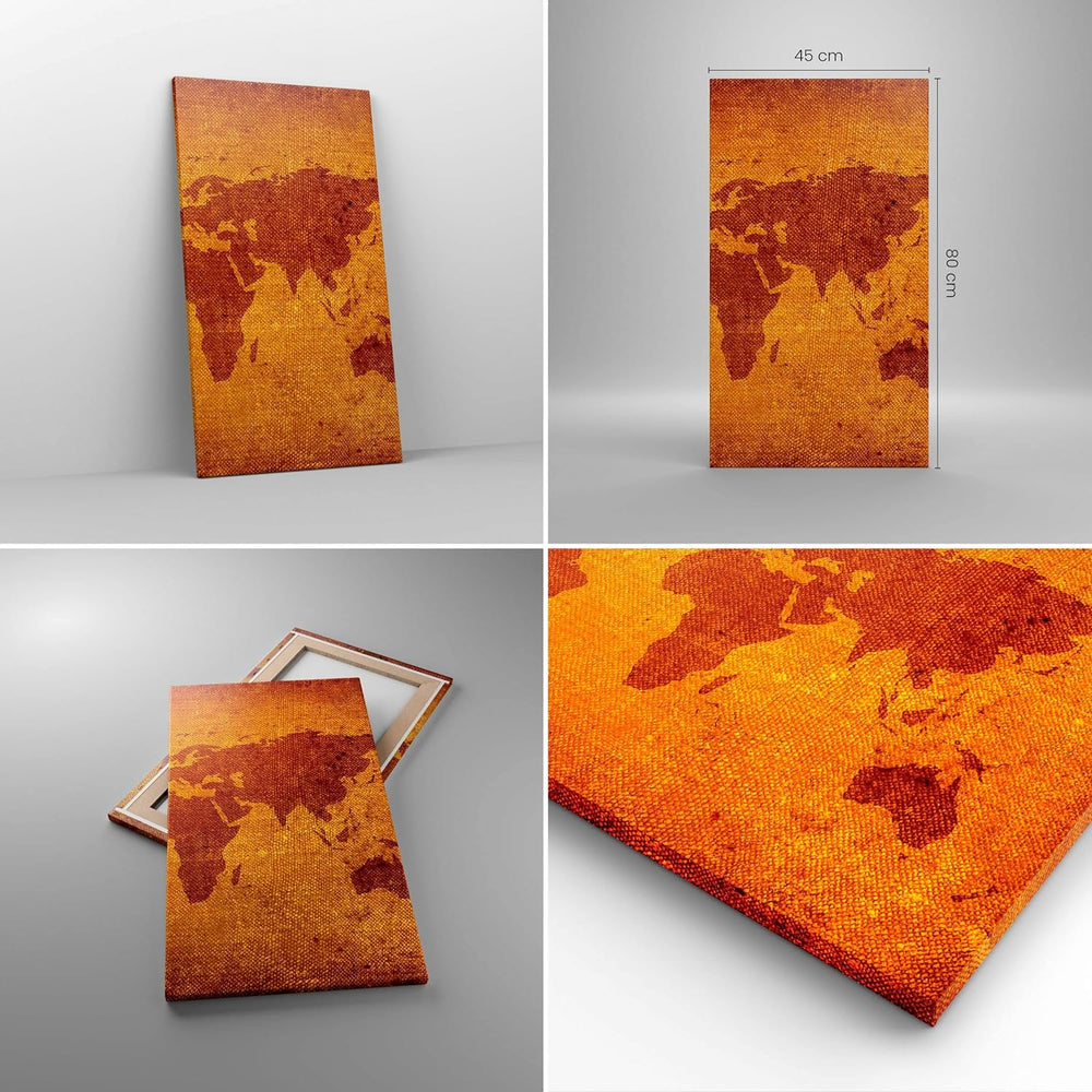 Bilder auf Leinwand Alte Karte Kontinente Reisen Welt Leinwandbild mit Rahmen 45x80cm Wandbilder Dek