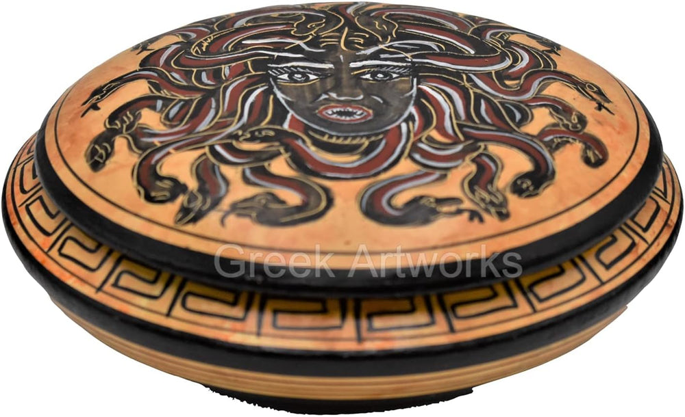 Medusa Schmuckkästchen griechisch römisch schwarz Figur Keramik 11,5 cm