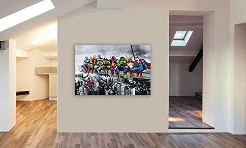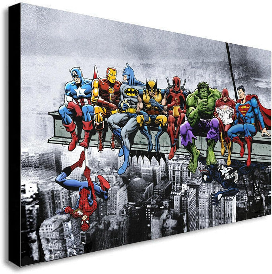 Kunstdruck auf Leinwand, Motiv Superhelden, Mittagessen auf Wolkenkratzer, gerahmt, verschiedene Grö