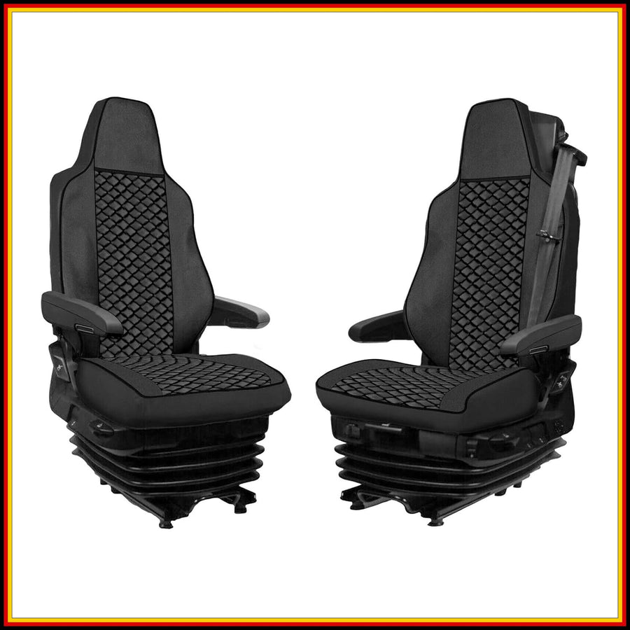 LKW Sitzbezüge 1+1 für TGX ab 2021 Schonbezüge Öko-Leder Schwarz Sitzauflagen