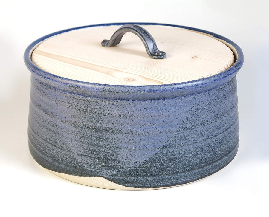 L – Brottopf für die grössere Familie, blau-schattiert. Keramik/Holz für zwei bis fünf