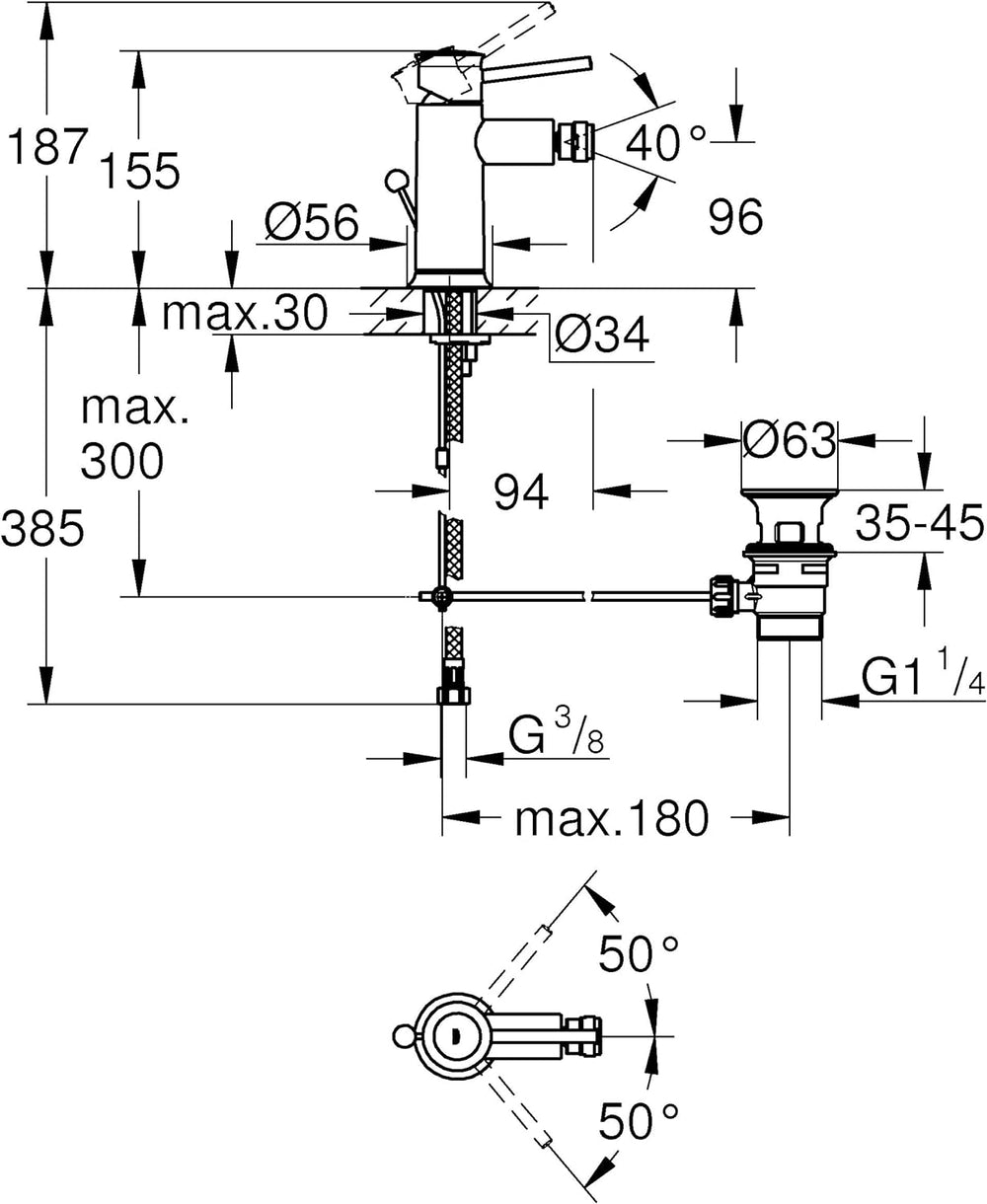 GROHE Start Classic - Einhand- Bidetarmatur (wassersparend, langlebige Oberfläche, mit Kugelgelenk),