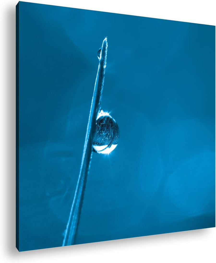 deyoli einzelner Grashalm mit Regentropfen Format: 60x60 Effekt: Monocrome Blau als Leinwandbild, Mo