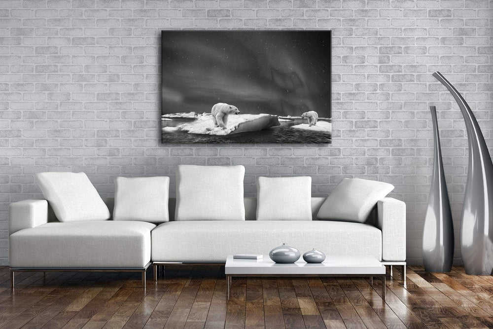 deyoli Eisbären im Polarlicht Format: 120x80 Effekt: Schwarz&Weiss als Leinwand, Motiv fertig gerahm