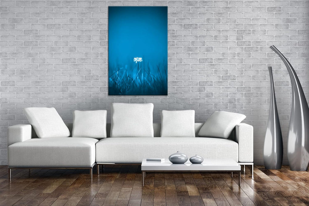 deyoli einzelnes Gänseblümchen Format 100x70 Effekt: Monocrome Blau als Leinwandbild, Motiv fertig g